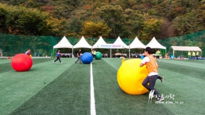 체육대회 패키지 중 명랑운동회 공굴리기 게임하는 모습...