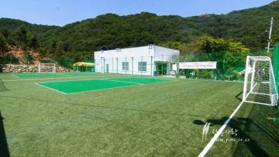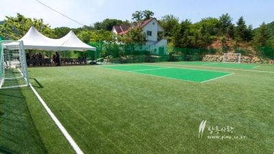 펜션과 신관식당 사이에 마련된 운동장 (인조잔디 족구...